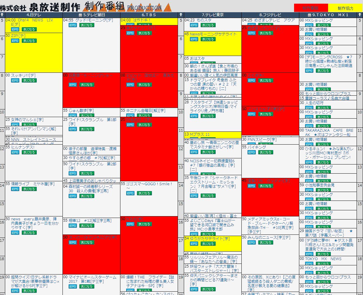 泉放送制作の制作番組を番組表で色分けしてみた